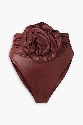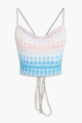 Cropped draped metallic crochet-knit top
