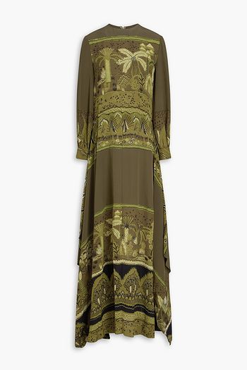 Lily one-sleeve floral-print silk-satin gown