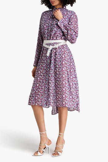 Floral-print embroidered cotton and silk-blend voile midi shirt dress
