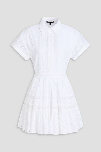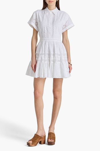 Winona tiered embroidered cotton-blend mini shirt dress