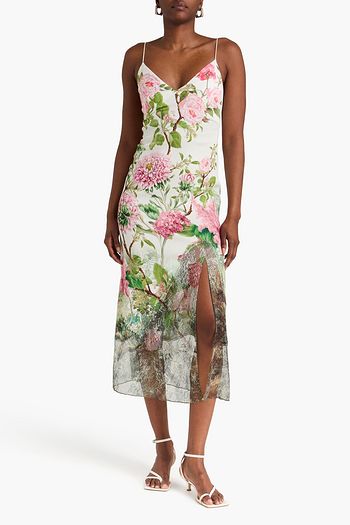 Julietta floral-print lace-paneled crepe de chine midi dress