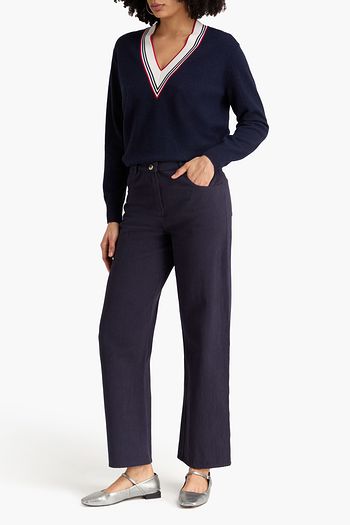 Striped linen and cotton-blend flared pants