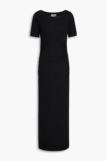 Embellished cutout metallic ribbed cotton-blend midi dress