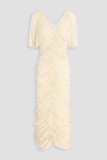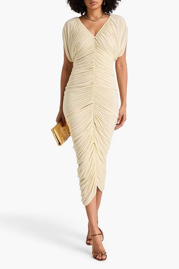 Sinead off-the-shoulder wool and silk-blend midi dress