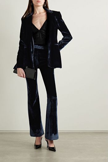 Double-breasted cotton-blend velvet blazer