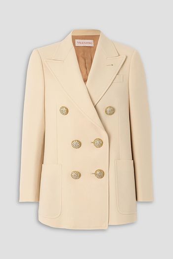 Double-breasted metallic embellished wool and silk-blend crepe blazer