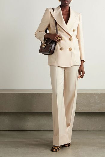 Double-breasted wool and silk-blend crepe blazer
