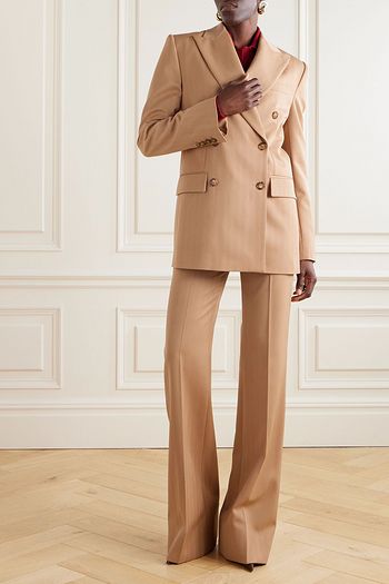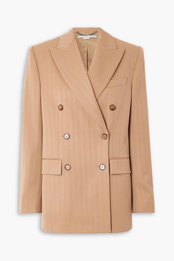 Crystal-embellished double-breasted virgin wool-twill blazer