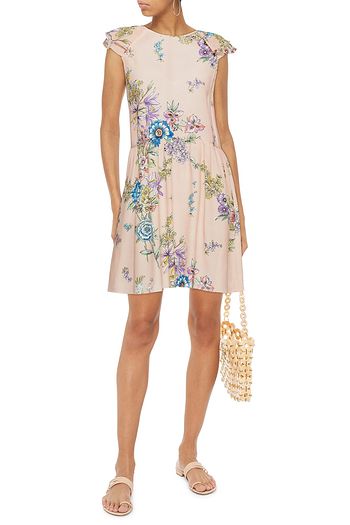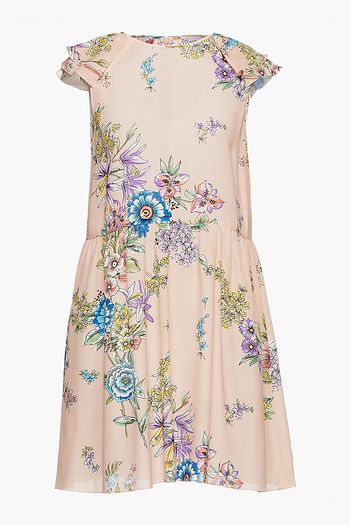 Marcelle ruffle-trimmed ruched printed mesh mini dress