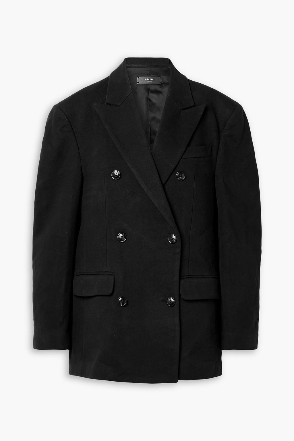 AMIRI’S blazer is a major borrowed-from-boys moment. It’s made from black cotton with sharp peak lapels and dual back vents. We like balancing its masculine feel with a mini skirt and heels.