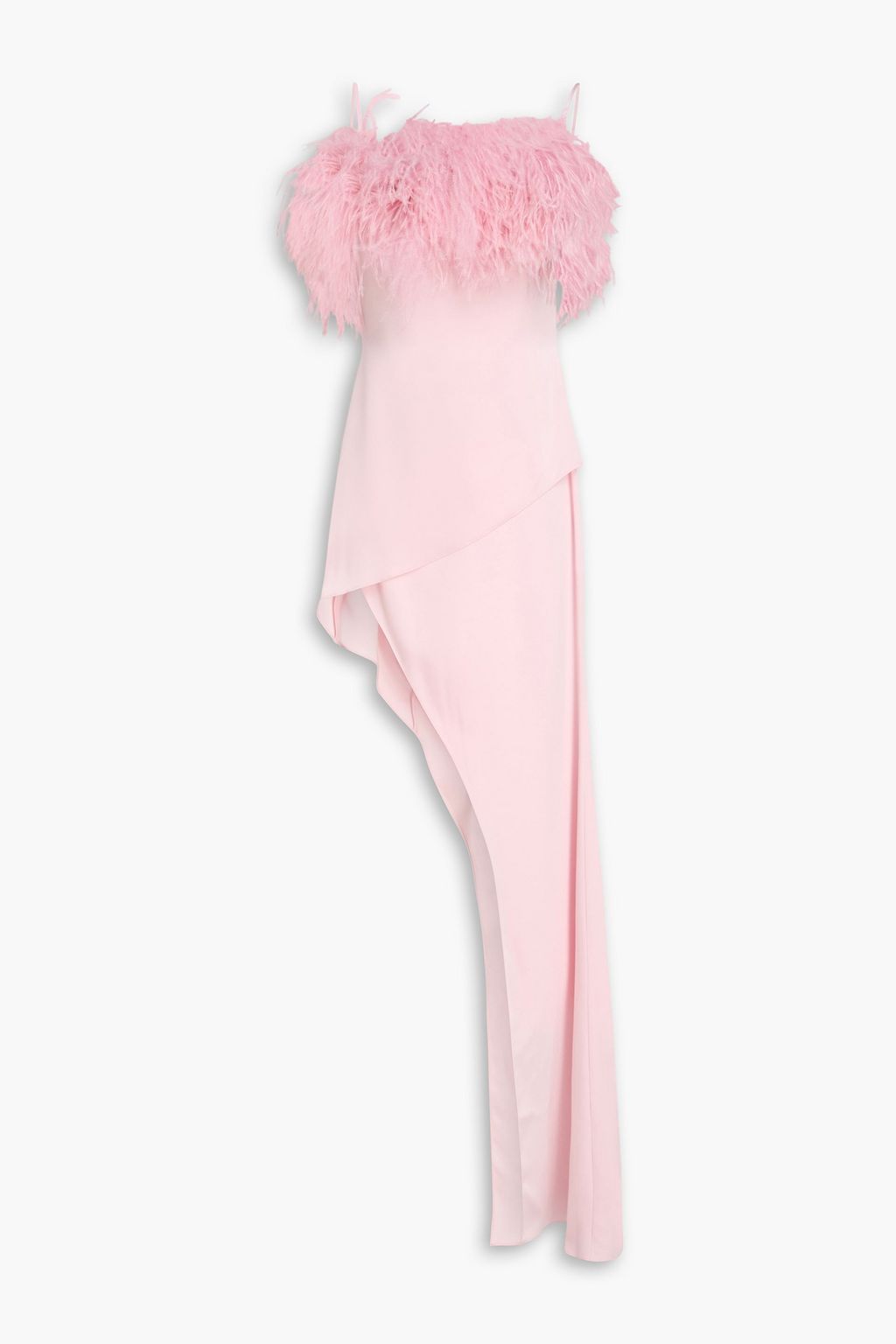DAVID KOMA Feather-embellished satin maxi dress