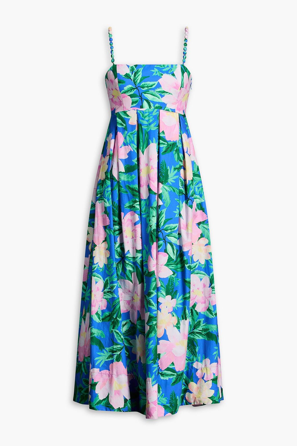 FARM RIO Pleated floral-print cotton-poplin midi dress