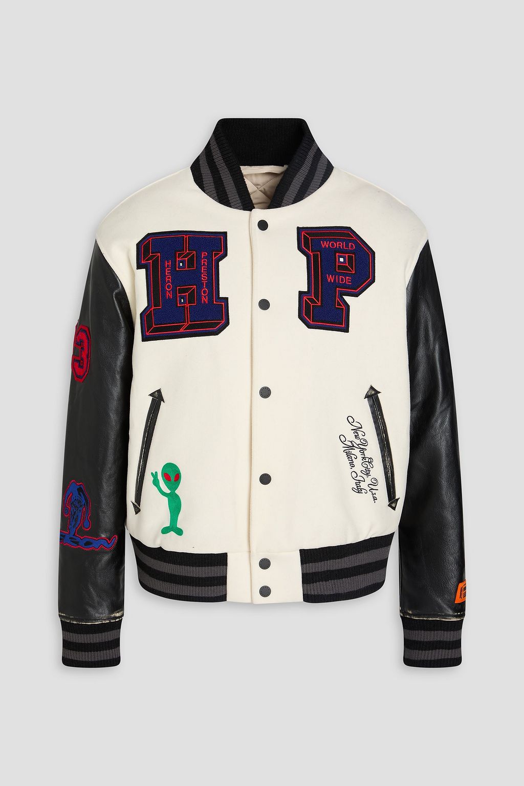 HERON PRESTON Appliquéd leather and wool-blend felt bomber jacket