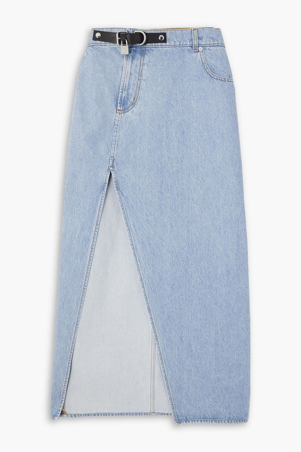 Denim midi skirts are back in a big way this season, especially in lighter washes. JW Anderson updates the staple with a contrasting leather trim and shiny silver-tone padlock. One of the back pockets is detailed with the brand's signature anchor.