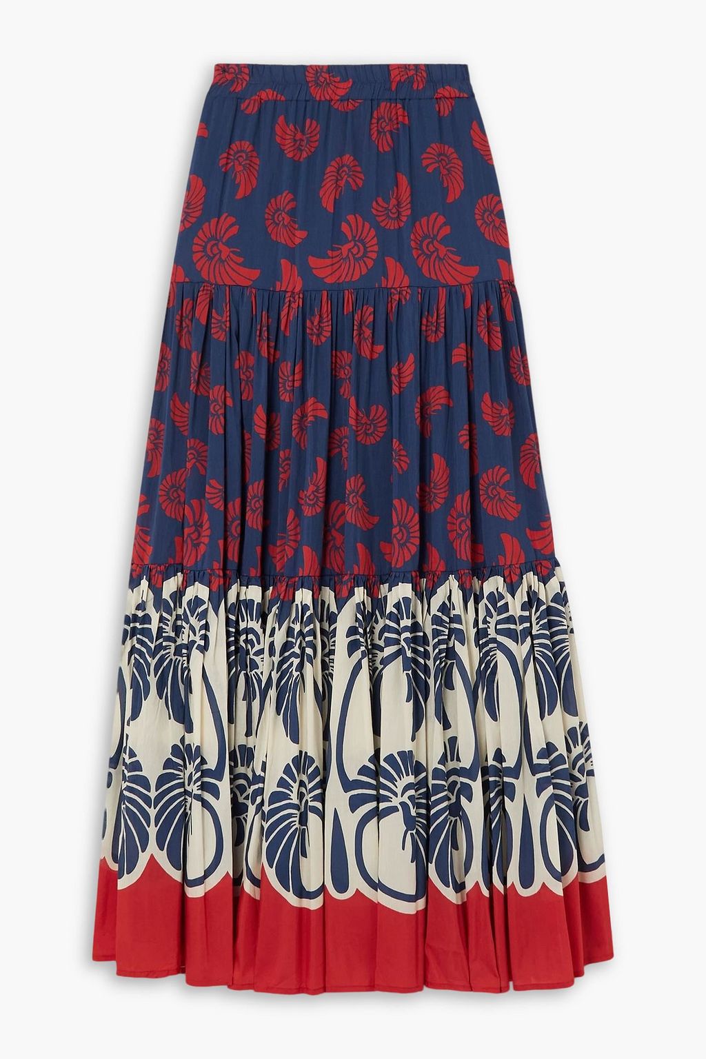 LA DOUBLEJ Tiered printed cotton and silk-blend maxi skirt