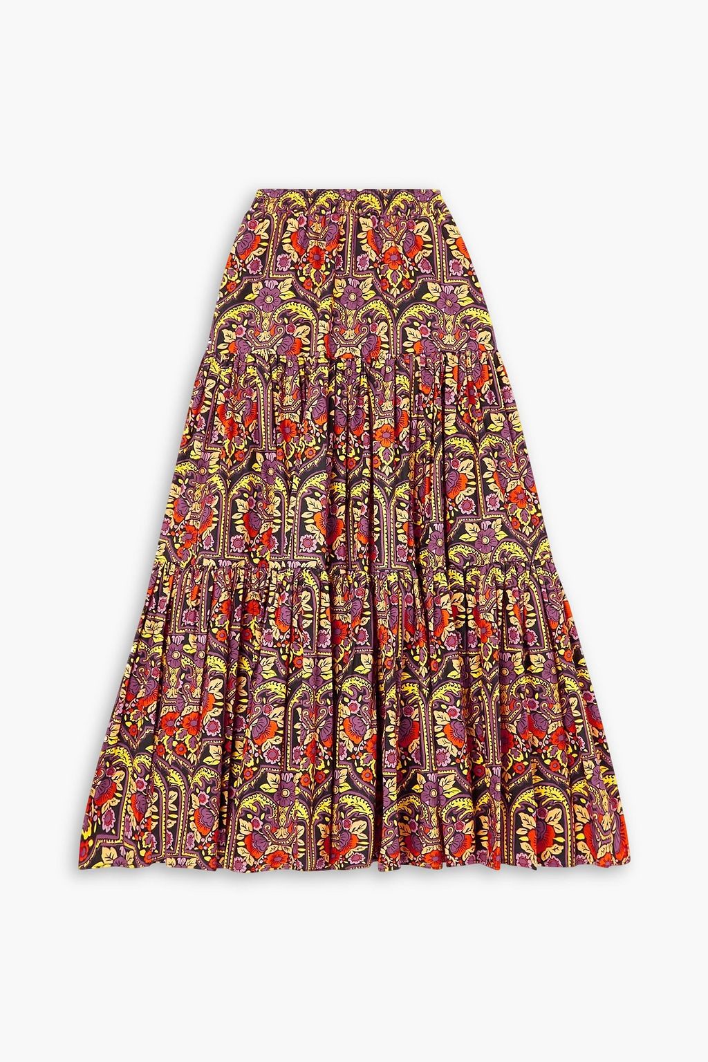LA DOUBLEJ Tiered printed cotton-poplin maxi skirt