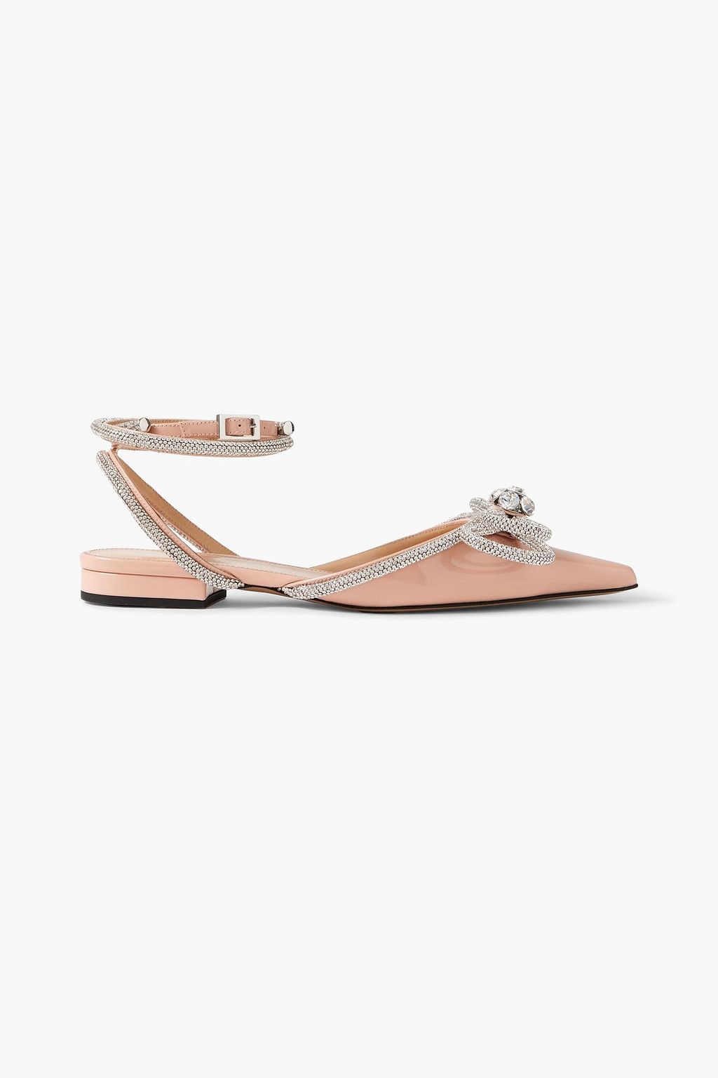 MACH & MACH Double Bow crystal-embellished patent-leather point-toe flats