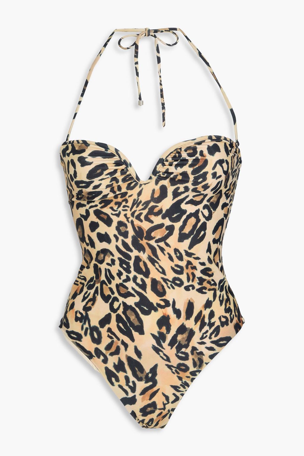 NANUSHKA Brissa leoaprd-priont bandeau swimsuit
