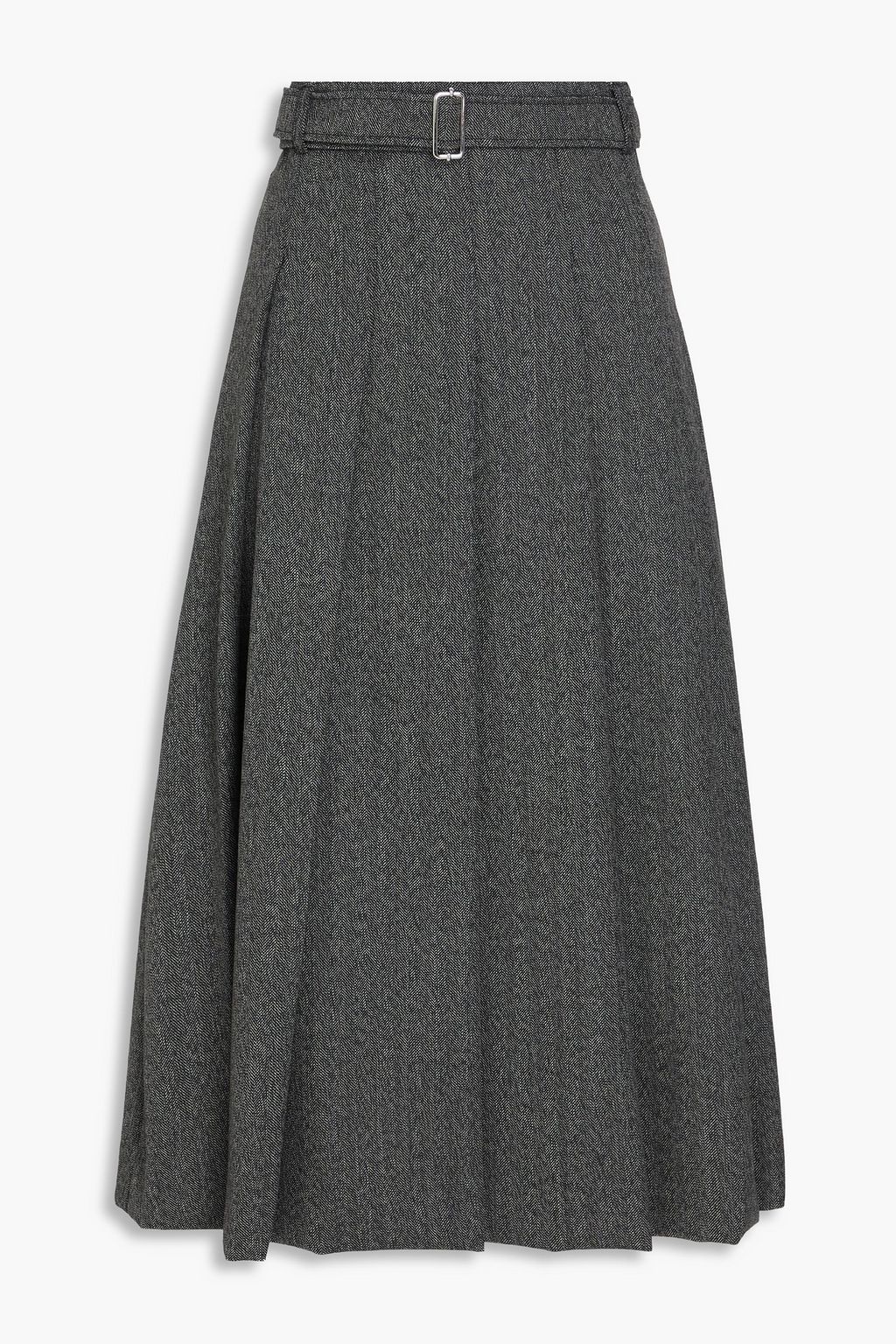 OFFICINE GÉNÉRALE Kenia belted pleated herringbone wool midi skirt