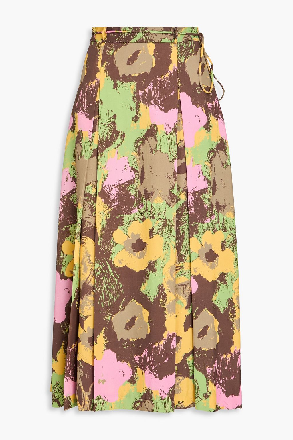 REJINA PYO Malia pleated printed crepe de chine midi skirt