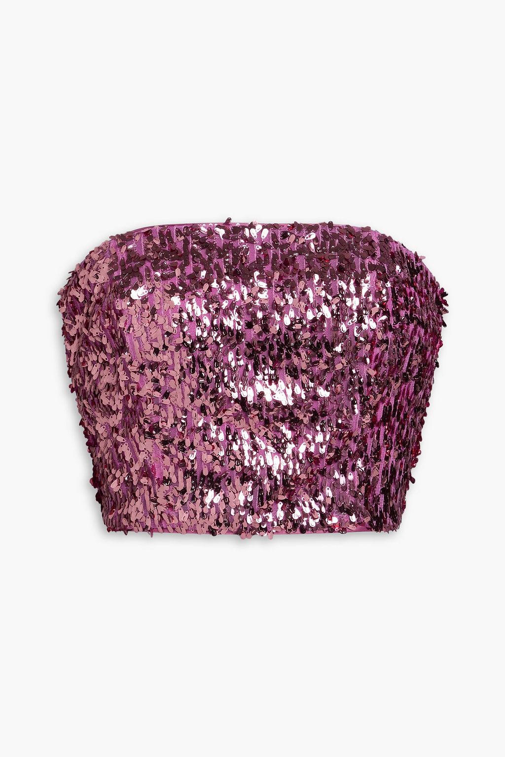 ROTATE BIRGER CHRISTENSEN Strapless cropped sequined tulle top