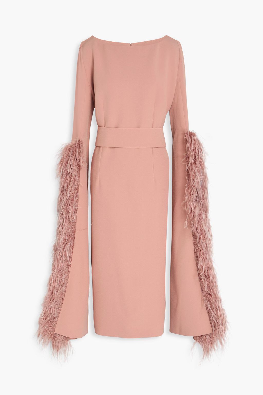 SAFIYAA Octavia belted feather-embellished crepe dress