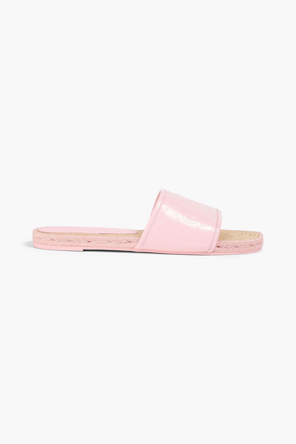 TORY BURCH T Monogram embossed patent-leather espadrille slides