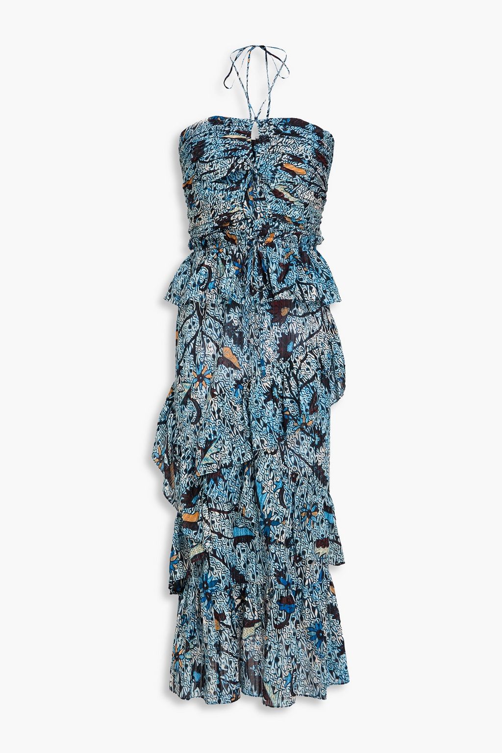 ULLA JOHNSON Ruffled cutout printed cotton-blend halterneck midi dress