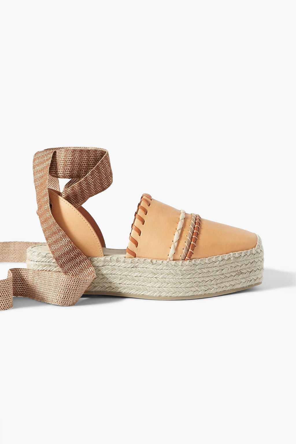 ULLA JOHNSON Whipstitched leather and canvas platform espadrilles