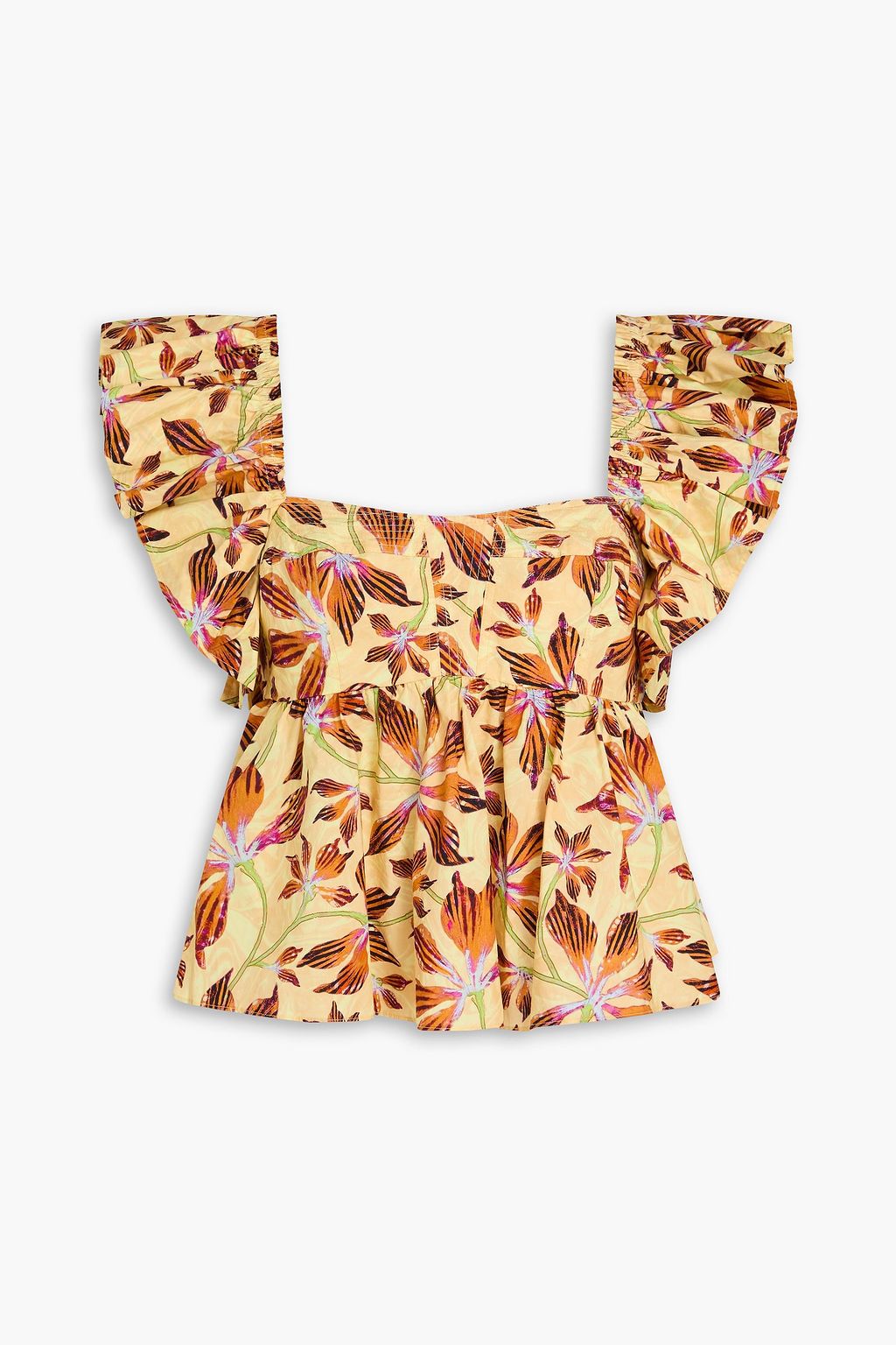 ULLA JOHNSON Romi ruffled floral-print cotton-poplin top