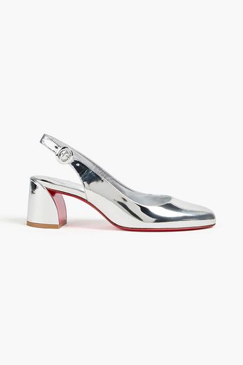Mirrored-leather slingback pumps