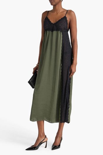 Nelida strapless floral-appliquéd guipure lace and woven midi dress