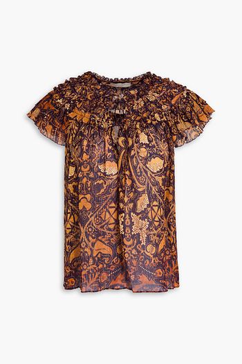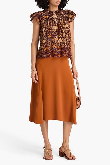 Lenore embroidered silk-crepon blouse