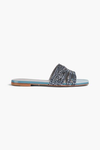 Hades leather-trimmed woven slides