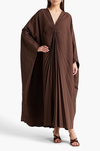 Pleated cotton and silk-blend crepe gown