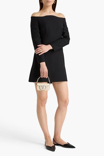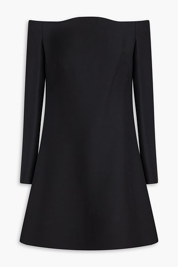 Off-the-shoulder wool-blend crepe mini dress
