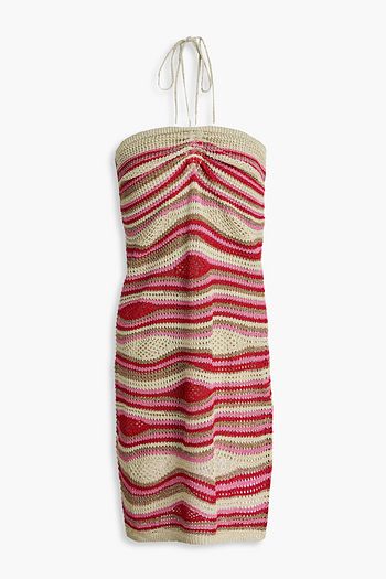 Ruched floral-print halterneck swimsuit