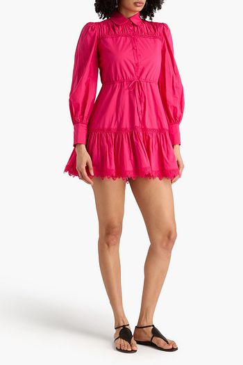 Begonia crochet-trimmed cotton-blend mini shirt dress