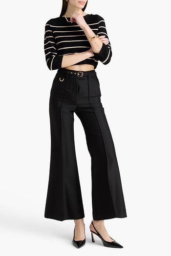 Belted wool and silk-blend flared pants