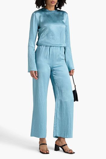 Eden feather-trimmed paisley-print silk-twill flared pants