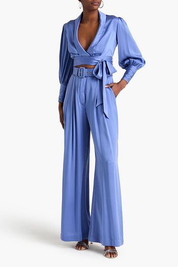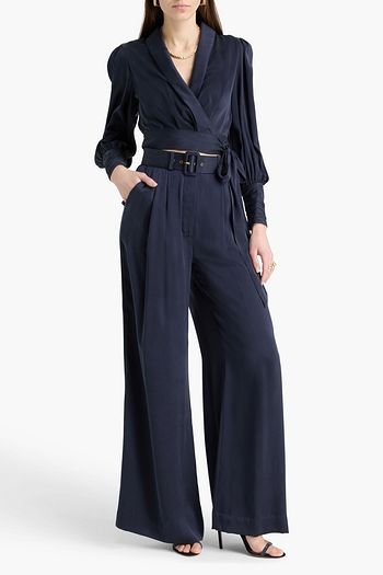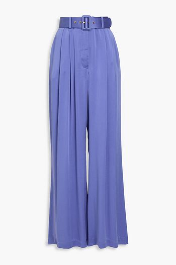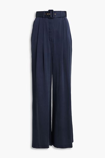 Belted washed-silk wide-leg pants