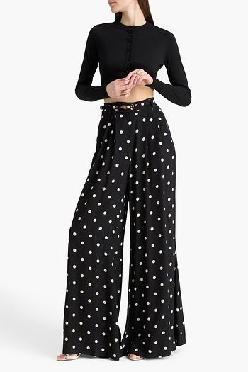 Belted polka-dot satin wide-leg pants