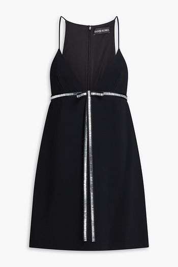 Crystal-embellished grosgrain-trimmed crepe mini dress
