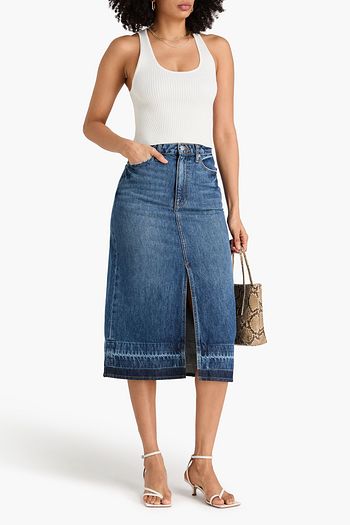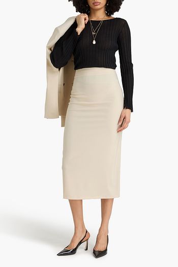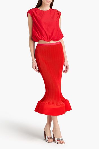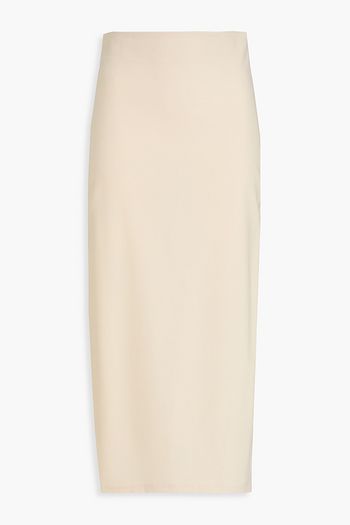 Pleated printed lyocell and cotton-blend poplin midi skirt