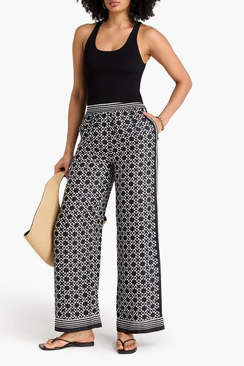 Canvas-trimmed cotton-blend wide-leg pants