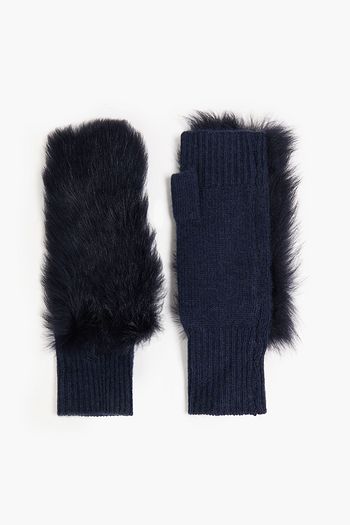 Shearling-trimmed merino wool and cashmere-blend fingerless gloves