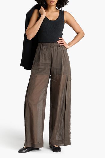 Linen, wool, silk and cashmere-blend wide-leg pants