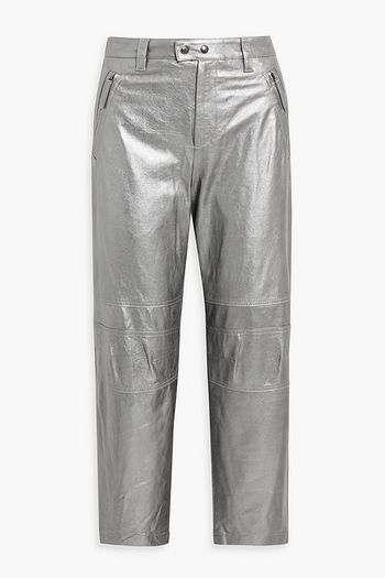 Cropped leather slim-leg pants