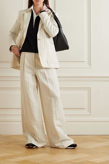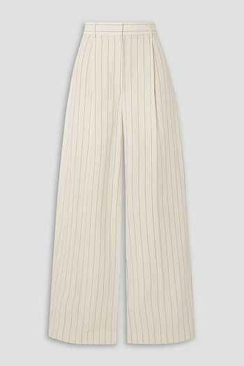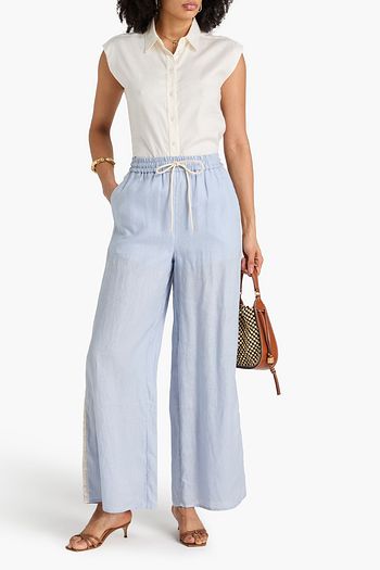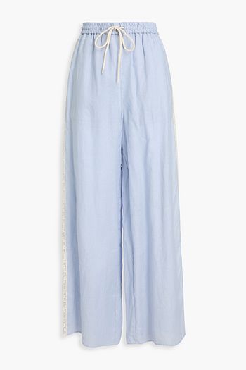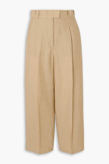 Katrine cropped pleated cotton and linen-blend tapered pants