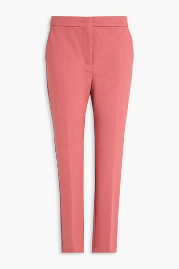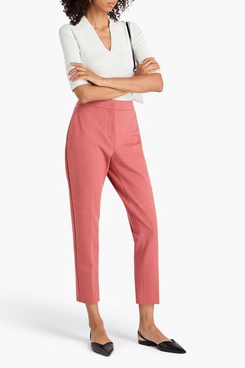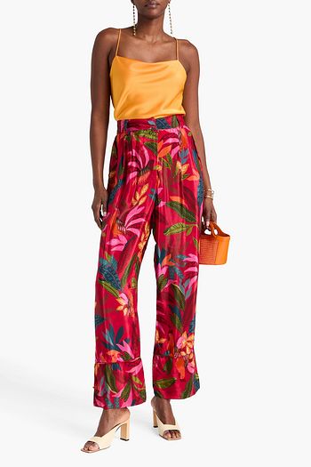 Fringed macramé-trimmed embroidered satin wide-leg pants